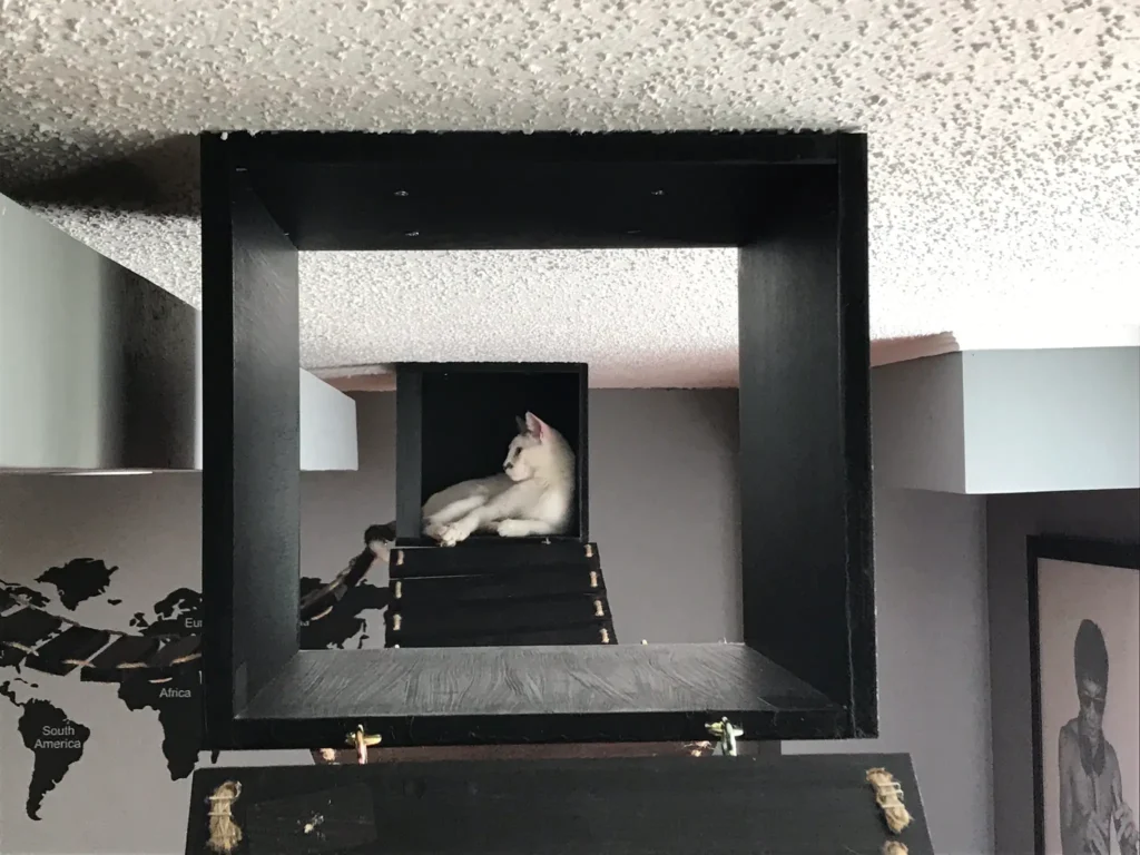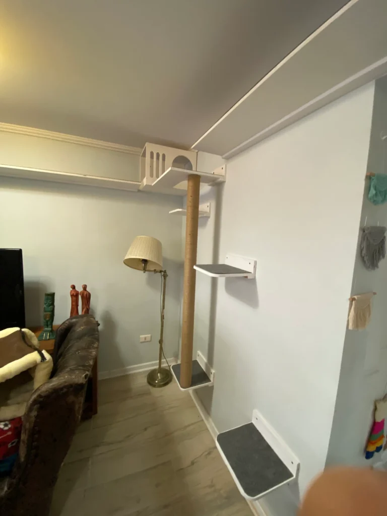 Diseñada para gatos que necesitan moverse, explorar y dominar su entorno, este tipo de solución crea recorridos en altura donde cada elemento tiene un propósito: subir, cruzar, observar, descansar y seguir avanzando… tal como lo harían en la naturaleza.